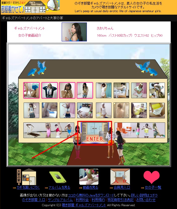 画面中央の「ENTER」の扉をクリックして下さい。
